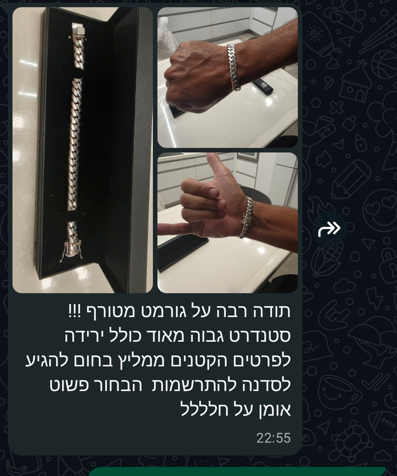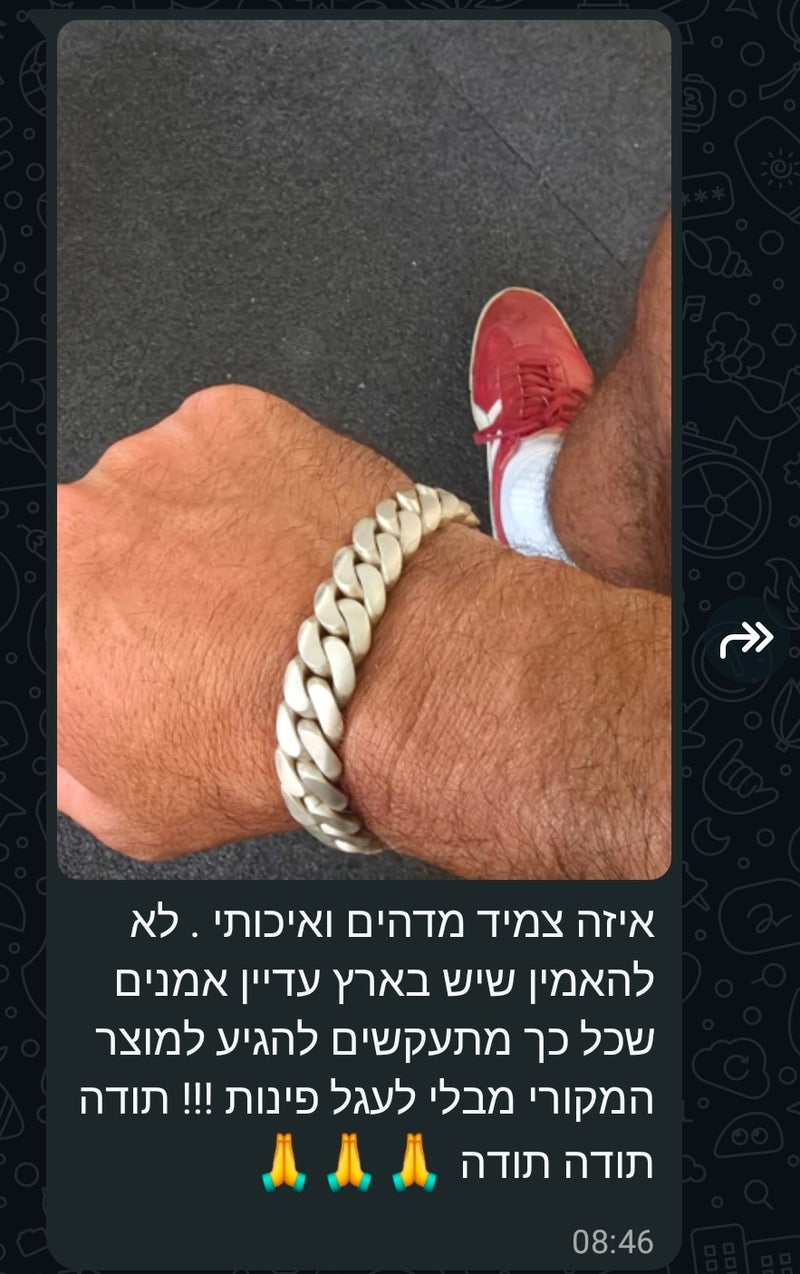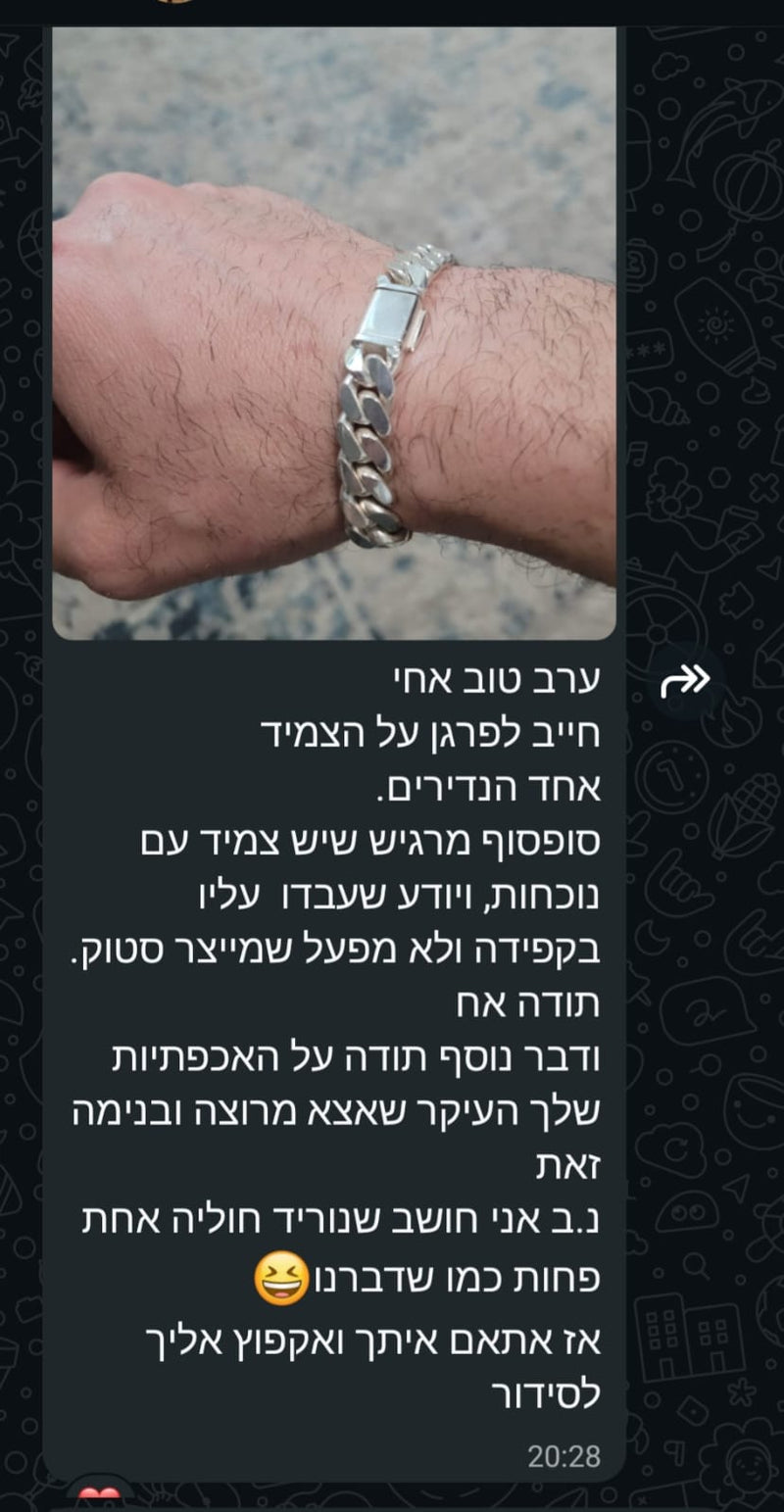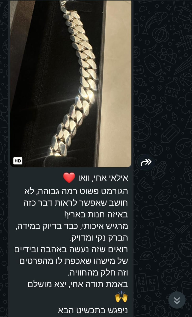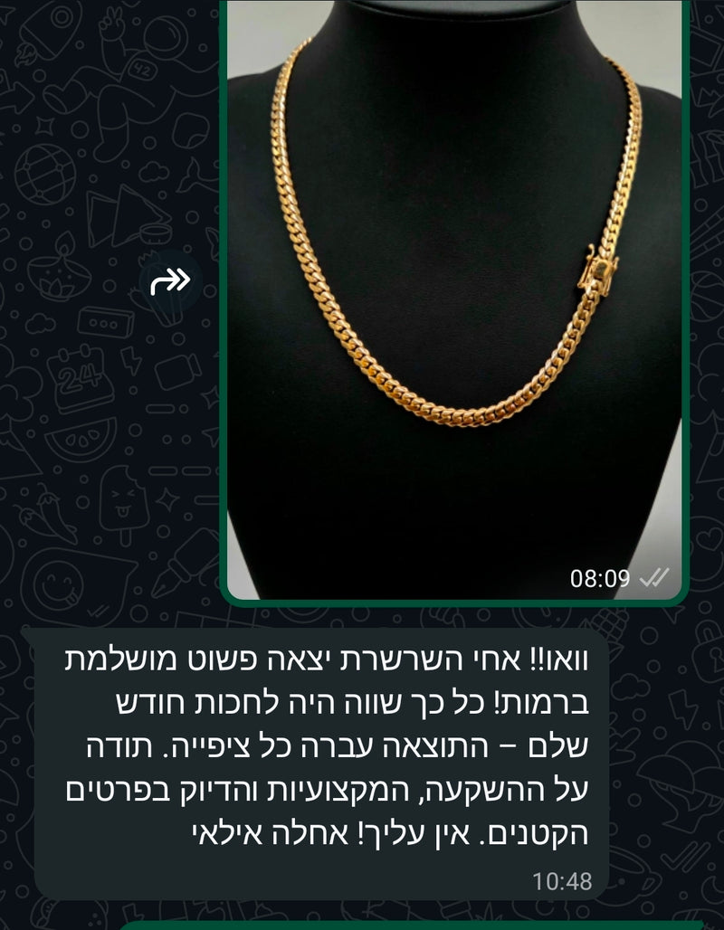 אני מבריק את השרשרת ידנית עד שהיא נוצצת כמו מראה. זה הרגע הכי מספק בתהליך - לראות את כל העבודה הקשה הופכת לתכשיט שרק מחכה שתענדו אותו.